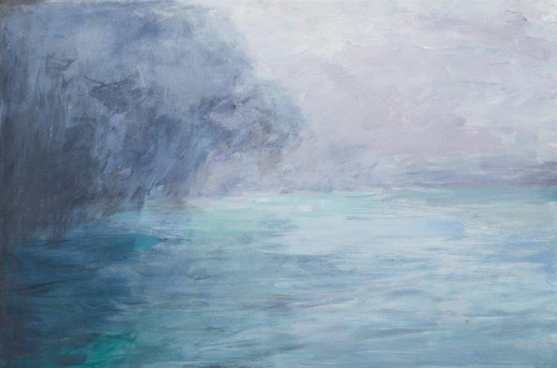 B 210, vor dem Gewitter (Neuenburgersee), 2018/20/22, Öl auf Leinwand, 40/60 cm